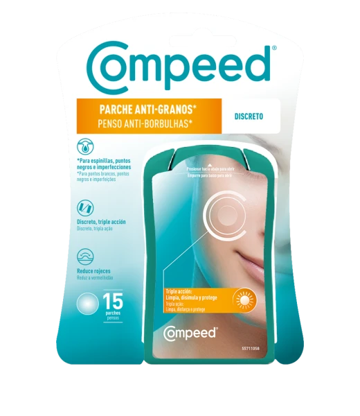 Los Parches Antigranos* Discretos de COMPEED® ayudan a limpiar, disimular y proteger tus *granos, espinillas, puntos negros e imperfecciones.