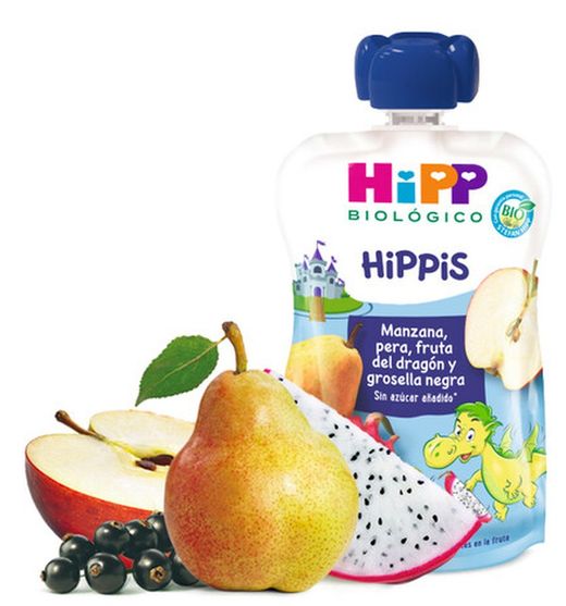 HiPP Biológico Hippis Bolsita Manzana, Pera, Fruta Dragón y Grosella 100g