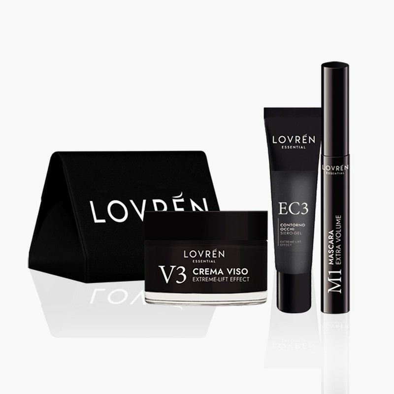 Lovrén Kit crema facial efecto lifting, máscara de pestañas Extra-Volumen y serum contorno de ojos efecto liftingidensificante.