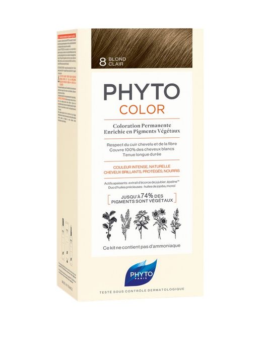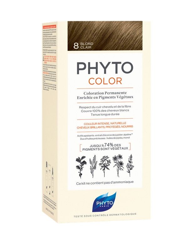 Es un producto de coloración permanente que cubre el 100% de las canas y es apto para todo tipo de cabellos. Su formulación natural y libre de amoniaco permite que todas las personas que deseen cambiar el tono de su cabello lo hagan sin ningún tipo de contraindicación. Este producto proporciona un radiante tono rubio claro con reflejos luminosos y naturales. La suave formula de Phyto cubre completamente las raíces cuidando la salud de tu cabello.