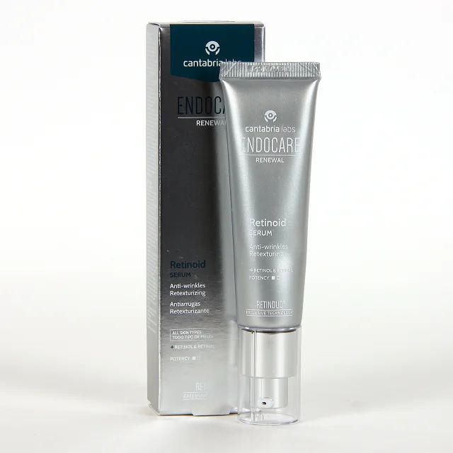 Sérum antiarrugas de textura ligera formulado con RetinDuo® Technology, compuesta por una combinación de retinoides (retinol puro encapsulado en microesponjas y retinal en nanovesículas) y un booster con ingredientes de origen natural, que proporciona una retexturización y renovación epidérmica.