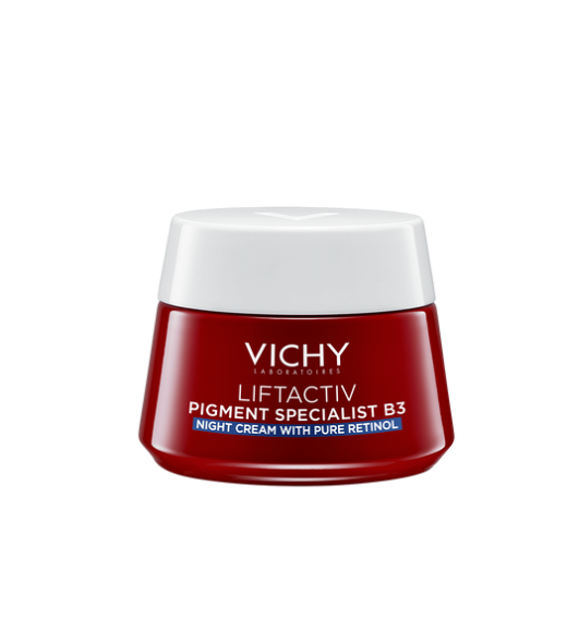 Laboratorios Vichy combina Niacinamida B3 y retinol puro en una crema. Difumina hasta el 45% de las manchas. Rejuvenece la piel con 2 millones de células nuevas noche tras noche.